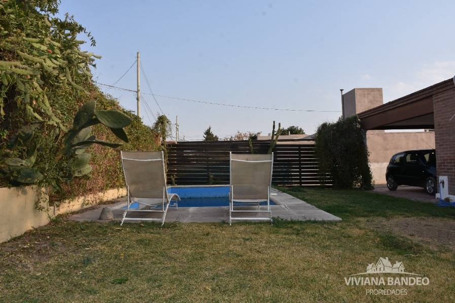 Compuesta por 3 dormitorios, living, cocina-comedor, baño, galería con asador, cochera. Pileta.