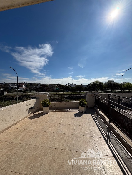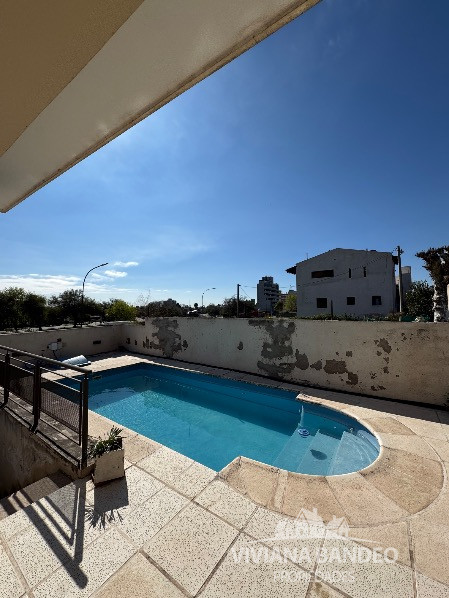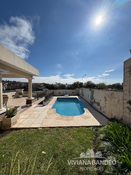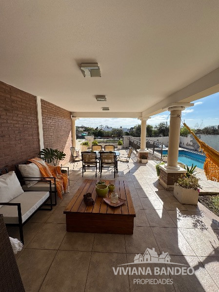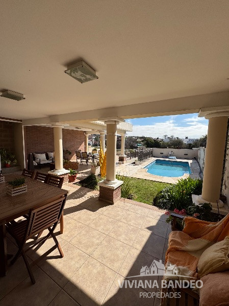Patio con galería y baño, terraza con vista al río y pileta con sistema de bombeo.